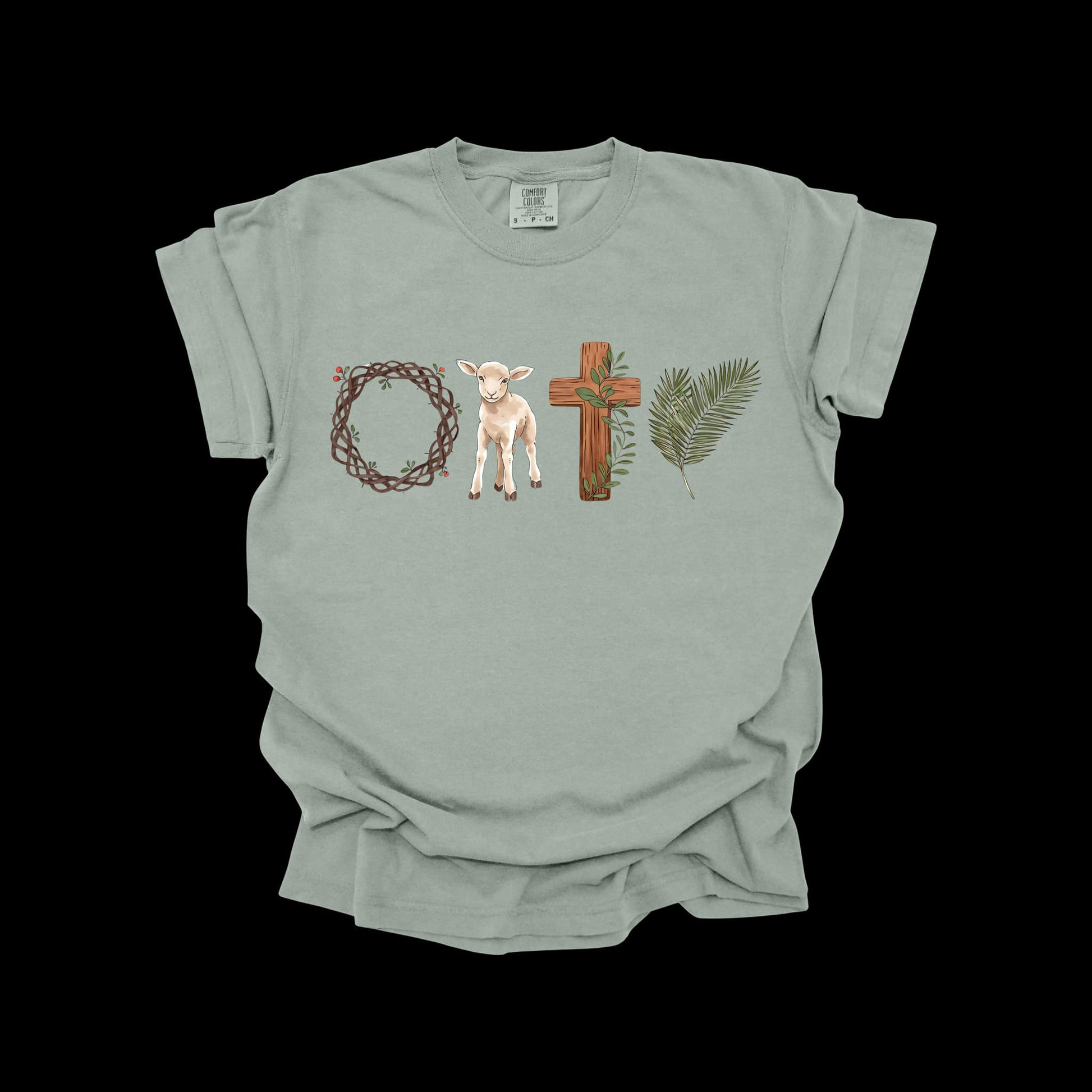A beautiful reminder of the true meaning of Easter, our Easter Faith "Hope" Tee features symbolic elements that spell out HOPE—a crown of thorns, a lamb, a wooden cross, and a palm branch. This faith-inspired design is perfect for Easter Sunday, church gatherings, or anyone wanting to wear a message of hope and redemption.